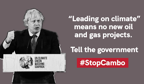 - If Boris Johnson is serious about taking climate action, he must reject Cambo, all new fossil fuel developments and support a just transition for oil and gas workers and impacted communities.